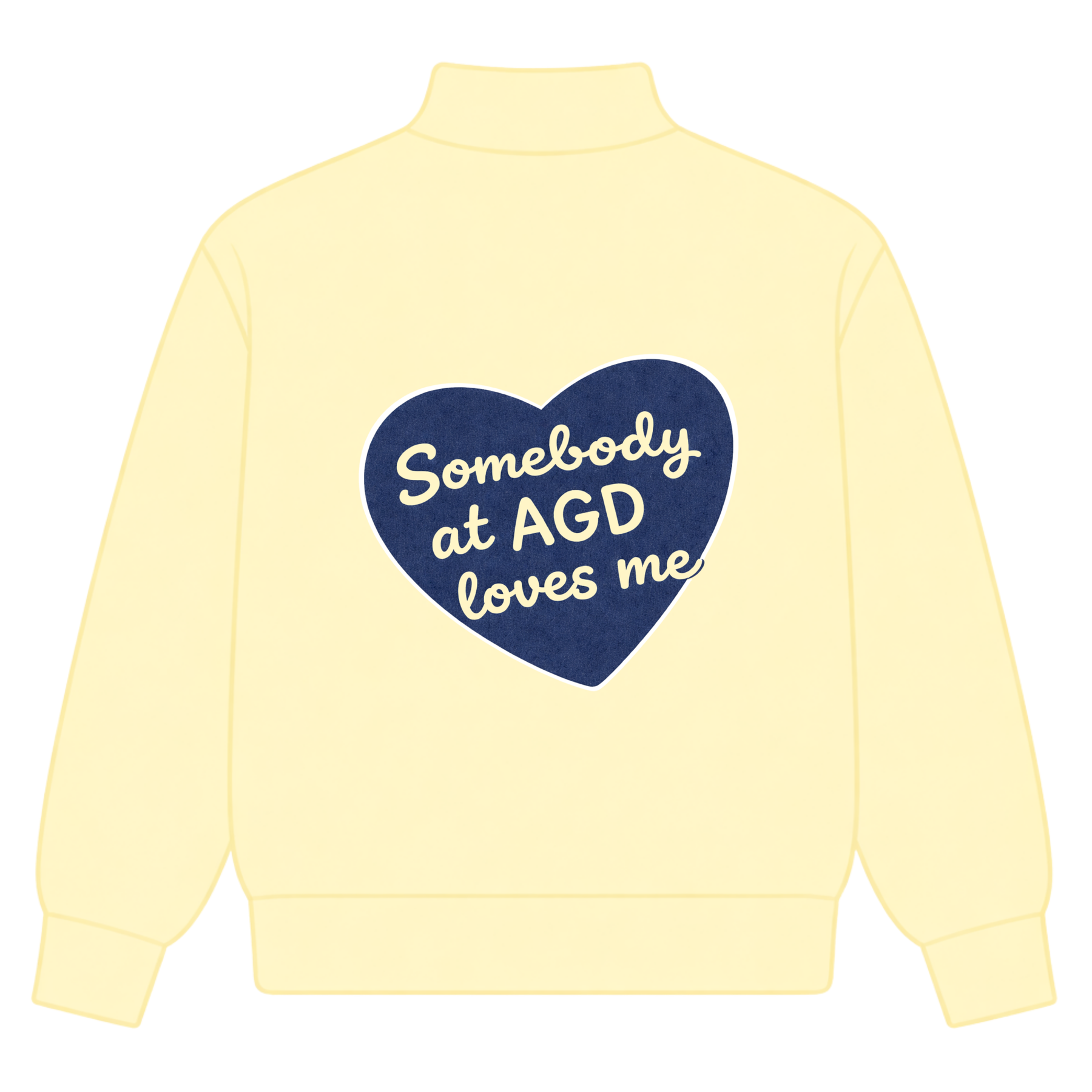CUSTOM BUTTER YELLOW MOCKNECK, FULLY EMBROIDERED PATCHWORK DESIGN