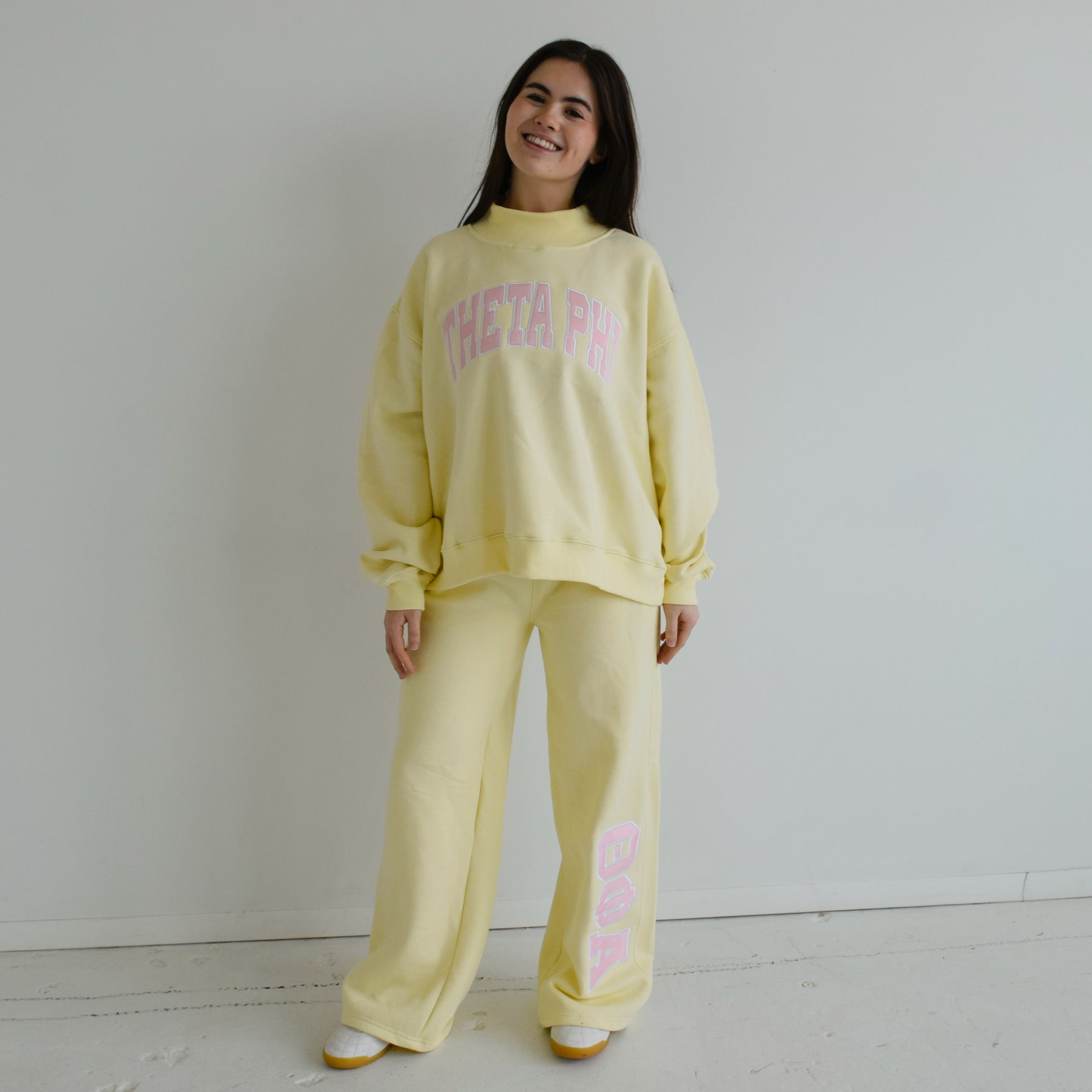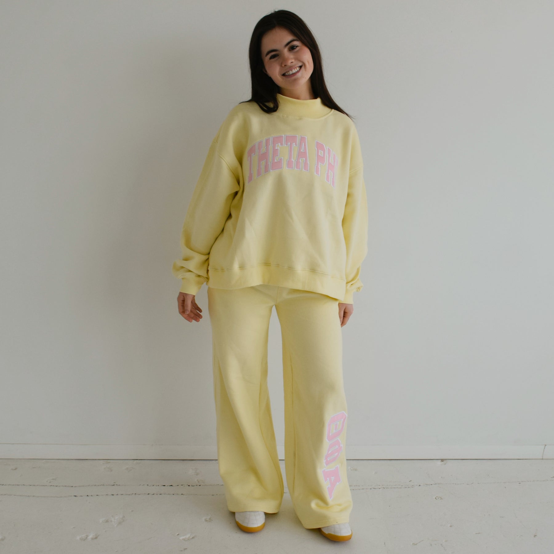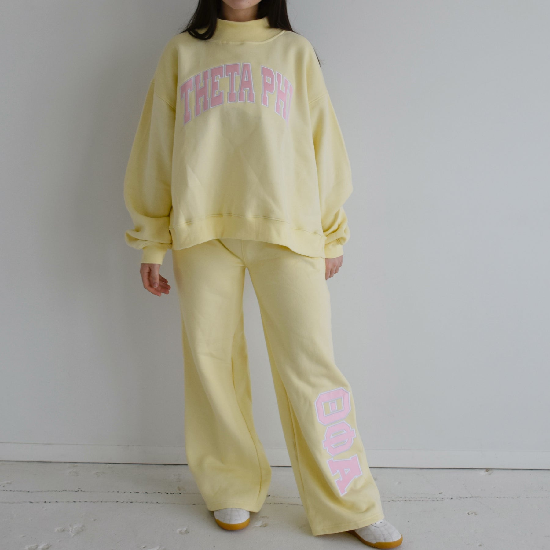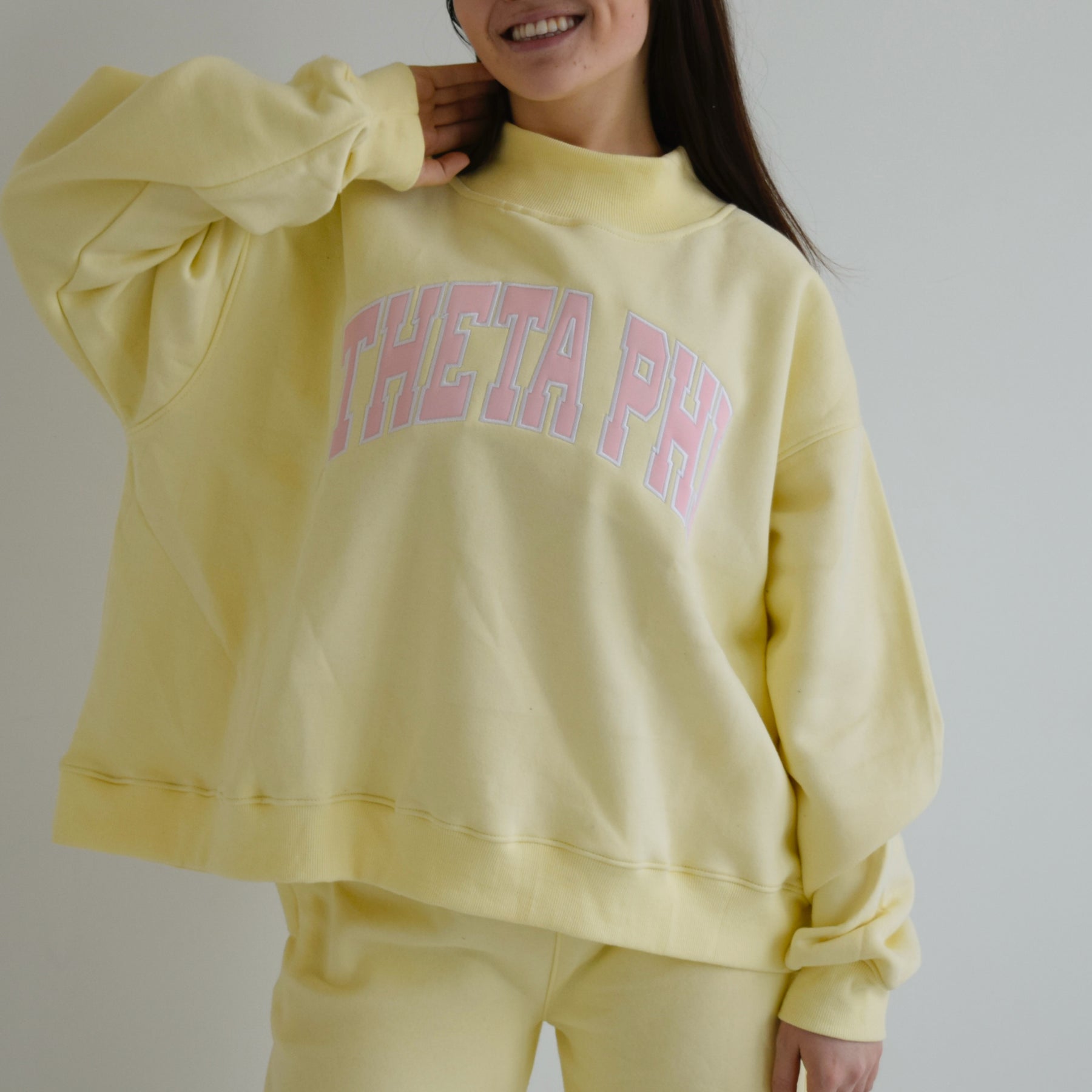 BUTTER YELLOW + PINK EMBROIDERED SORORITY MOCKNECK