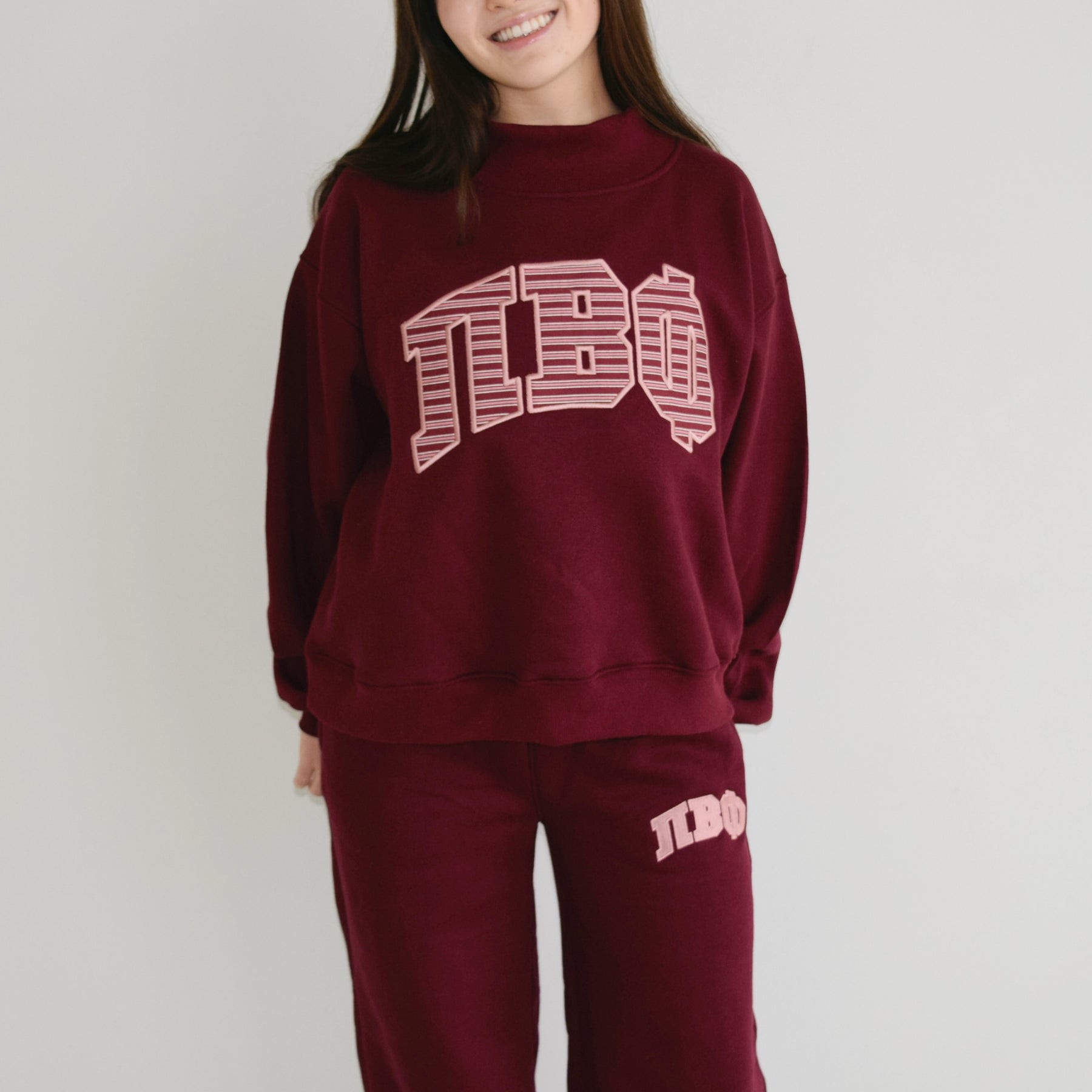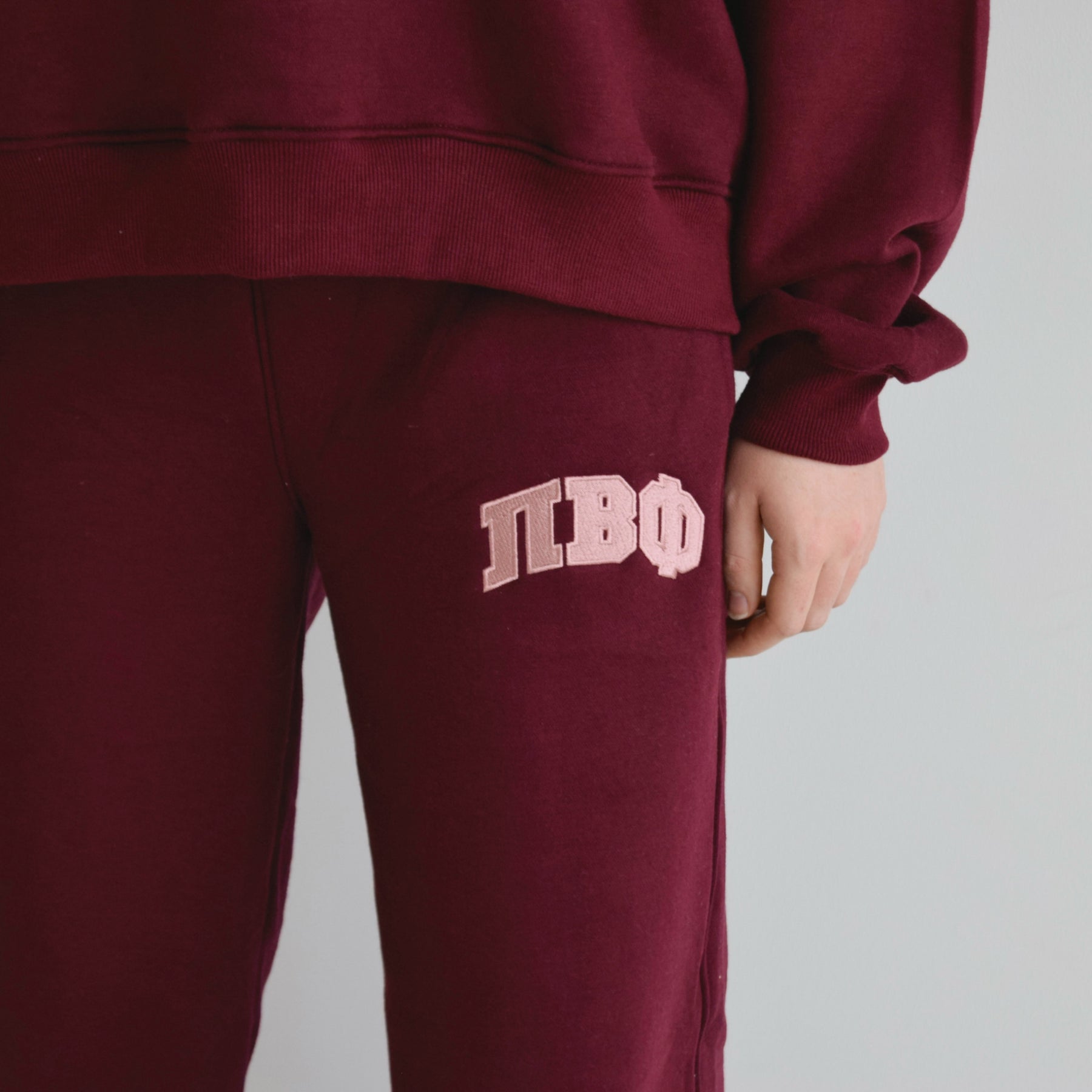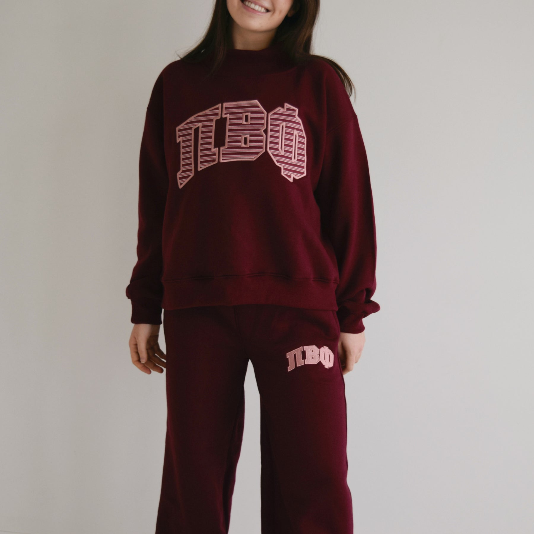 MAROON + MAUVE EMBROIDERED SORORITY SWEATS